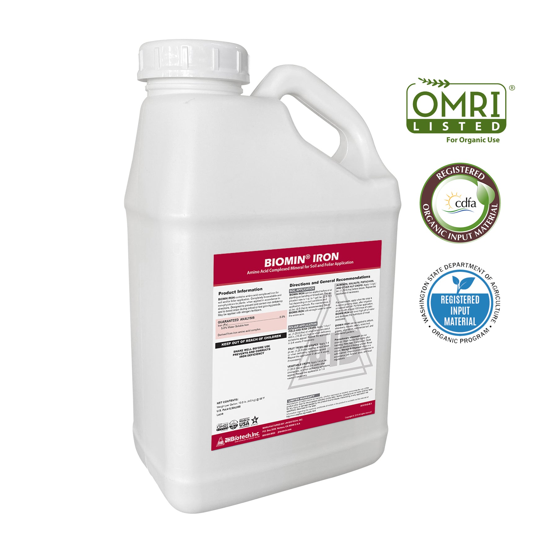 Biomin® Iron contains complexed iron for soil and/or foliar application. Completely bioavailable and non-phytotoxic to plants when applied in accordance to directions. Designed to prevent and correct iron deficiencies and to boost crops during critical or fast growing periods. May be applied with nitrogen fertilizers.