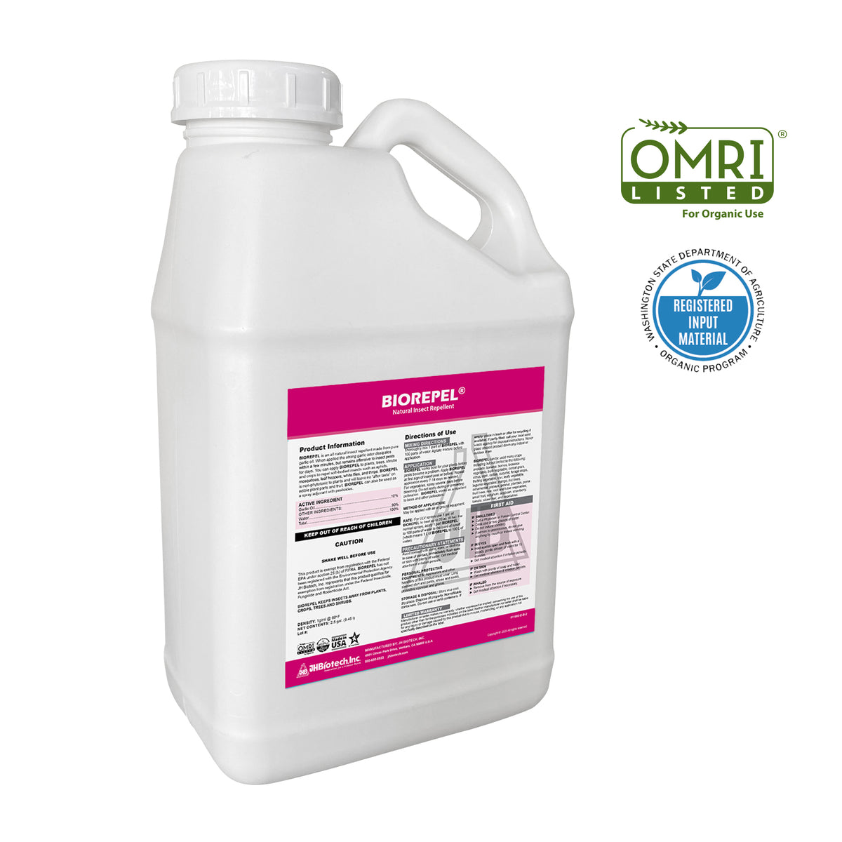 BioRepel® is an all natural insect repellent made from pure garlic oil. When applied the strong garlic odor dissipates within a few minutes, but remains offensive to insect pests for days. BioRepel® can be applied to all plants, trees, shrubs and crops to repel insect pests such as aphids, leaf hoppers, white flies, and thrips. It is safe to use, handle, and store and has no plant toxicity.