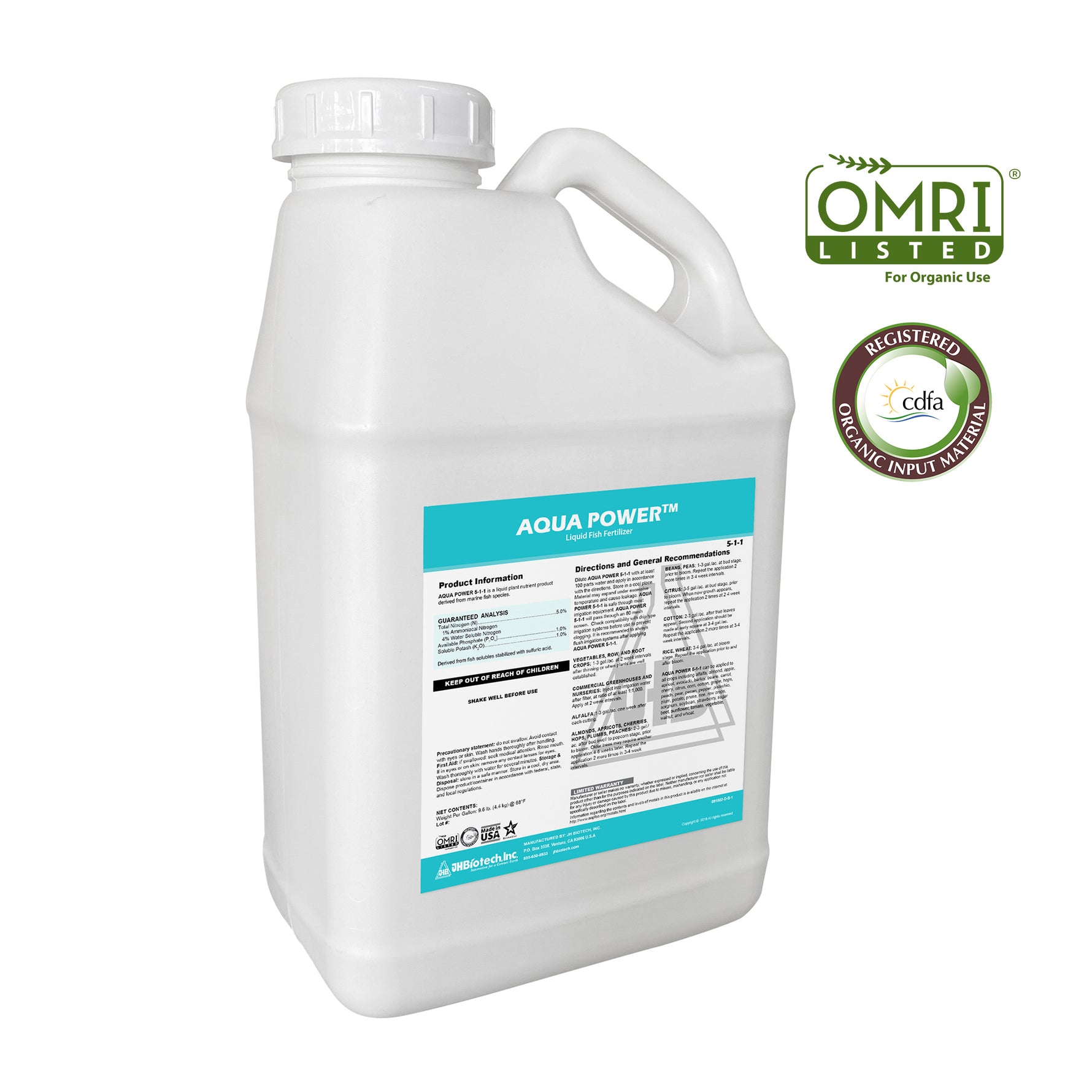Aqua Power™ 5-1-1 is a liquid plant nutrient product derived from marine fish species. It is a slow-release nitrogen, and it is packed with 20 different aminos acids, 13 vitamins, and 8 minerals. The proteins in Aqua Power™ 5-1-1 can be broken down into readily usable peptide for plants and beneficial soil microbes.