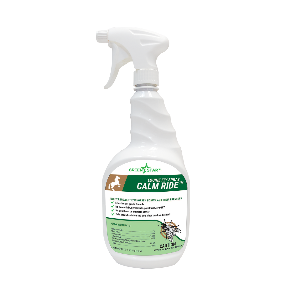 Calm Ride is a natural insecticide to keep annoying insects away from your horses and their living environments. Made with a combination of essential oils, Calm Ride is a highly effective insect repellent that safely keeps flies and ticks away from your horses.