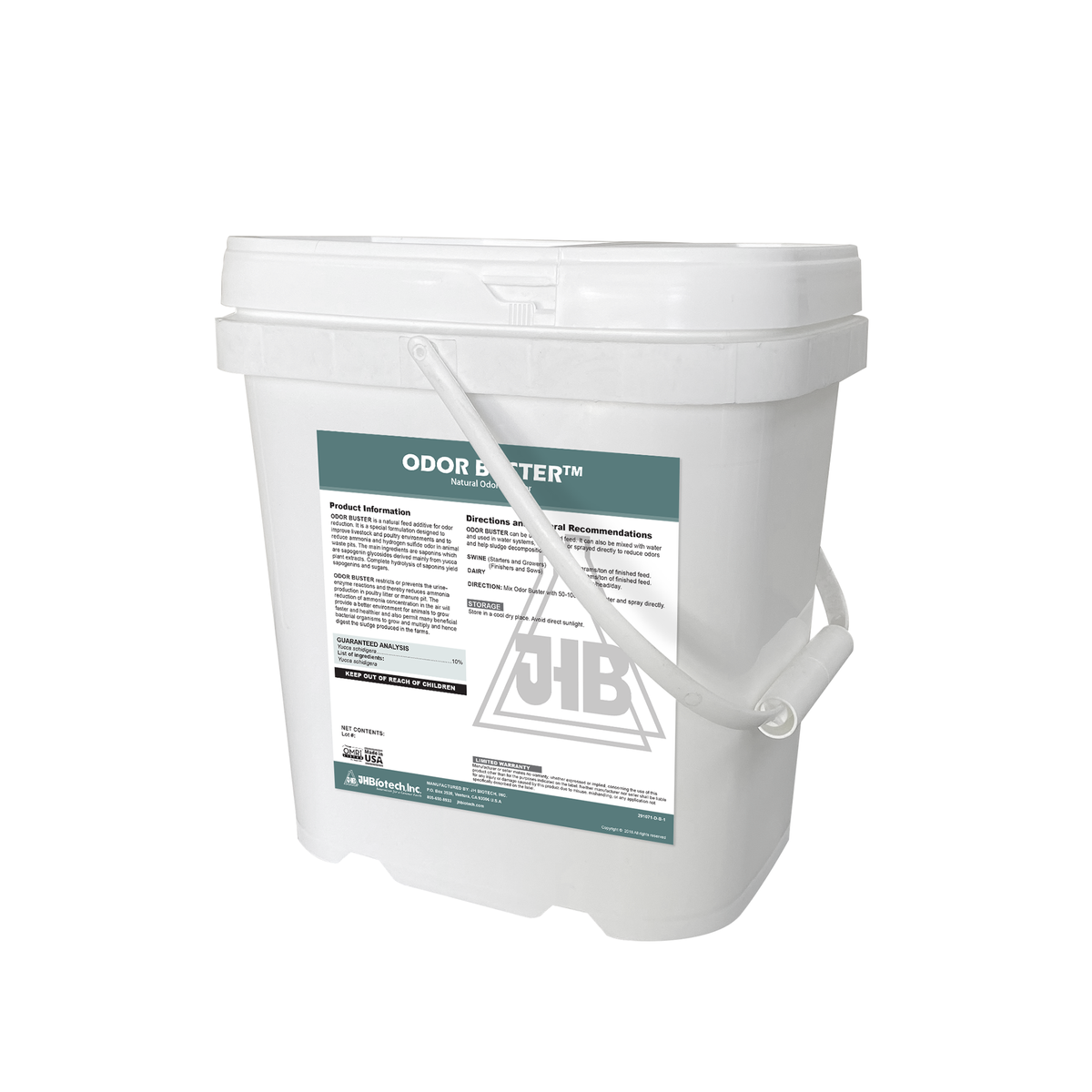 Odor Buster™ can be used in premixes, base mixes, concentrates, and complete feeds. It can be used in liquid feeds, water system mediators or sprayed directly on animal wastes (manure, litter) to reduce odors and help decompose sludge.